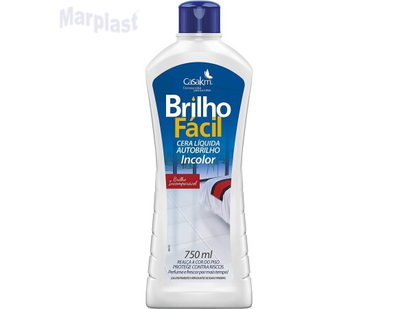 Marca tradicional no mercado, protege, dá brilho, reaviva a cor do piso e deixa aquele perfume e frescor por mais tempo! A cera líquida Brilho Fácil deixa o piso com aspecto espelhado e impecável, formando uma película especial, que reaviva cores, tem efeito antipó e protege contra riscos.