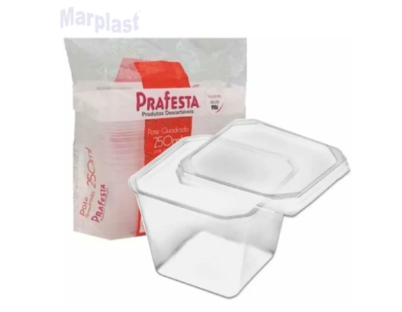 POTE DESCARTAVEL QUADRADO PRAFESTA 250ML 20UN - 8466