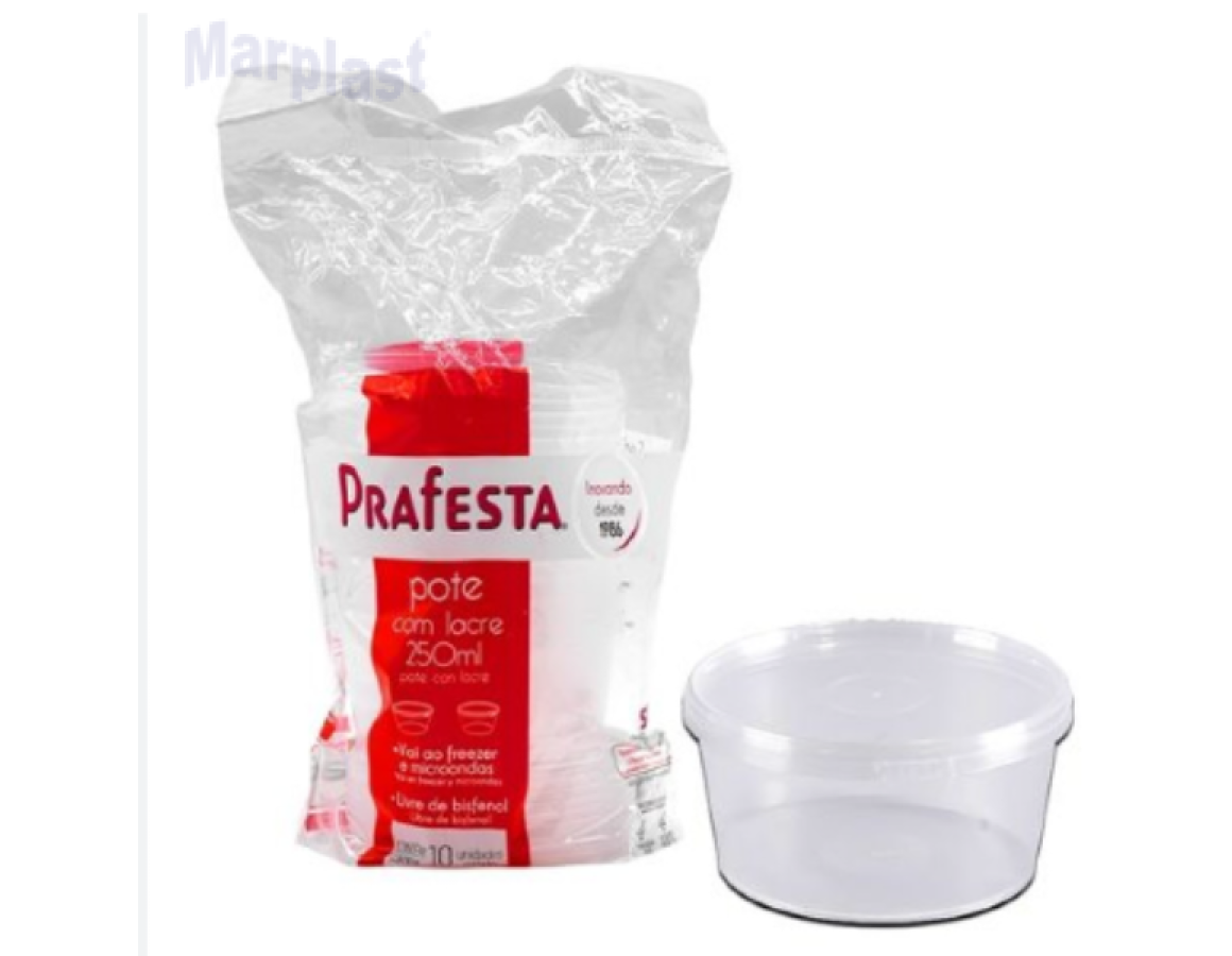 POTE DESCARTAVEL REDONDO PRAFESTA C/LACRE 250ML C/10 - 8801