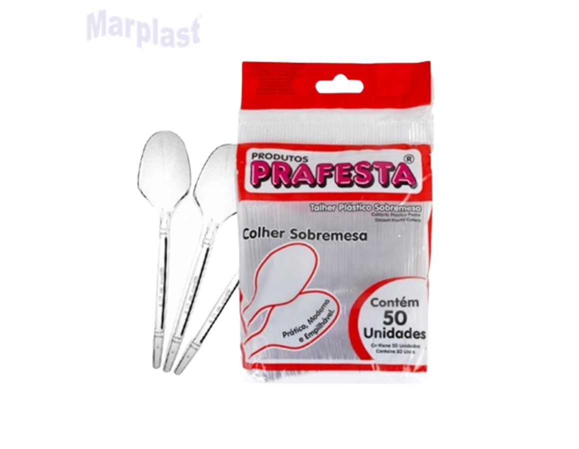 COLHER DESCARTÁVEL SOBREMESA CRISTAL C/50 UNIDADES