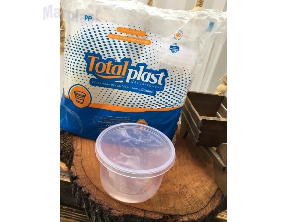 Pote plástico descartável com tampa, ideal para armazenar diversos tipos de alimentos, servir caldos, sobremesas, saladas, molhos, bolos e petiscos, e guardar.