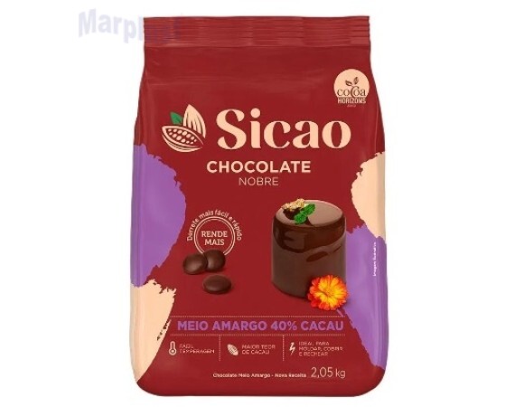 Chocolate Meio Amargo Chocolate linha nobre, ideal para o preparo de bombons, ovos de páscoa, bolos, sobremesas, doces finos e muito mais. Cremosidade e sabor diferenciado, os Chocolates Sicao encanta a todos os paladares, inclusive os mais exigentes. Fabricado no Brasil, porém com a tradição e qualidade única da Barry Callebaut.