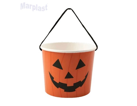 O balde de papel com tema de Halloween é ideal para complementar na sua festa, deixando ainda mais arrepiante! Encha-o de doces e se divirta com as travessuras!