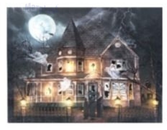 HALLOWEEN QUADRO ILUM. MANSÃO ABANDONADA 31X56CM COM 1 UNIDADE