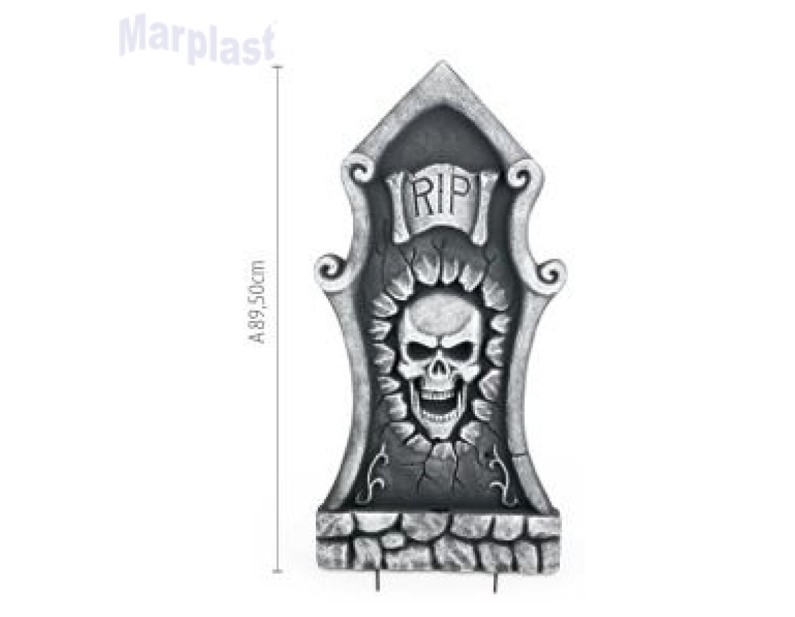 Túmulo sinistro! Use esta lápide em formato de caveira para decorar as melhores cenas de festa de Halloween. Este item decorativo será muito útil para apresentações teatrais em cemitérios