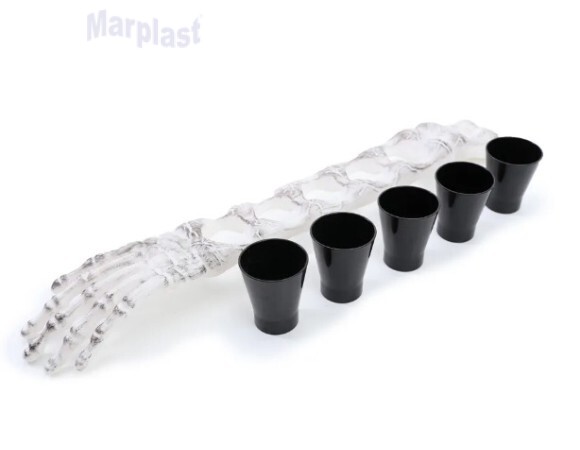 Suporte para copinhos de shots em formato de mão de caveira uma ideia inovadora para seu HALLOWEEN.