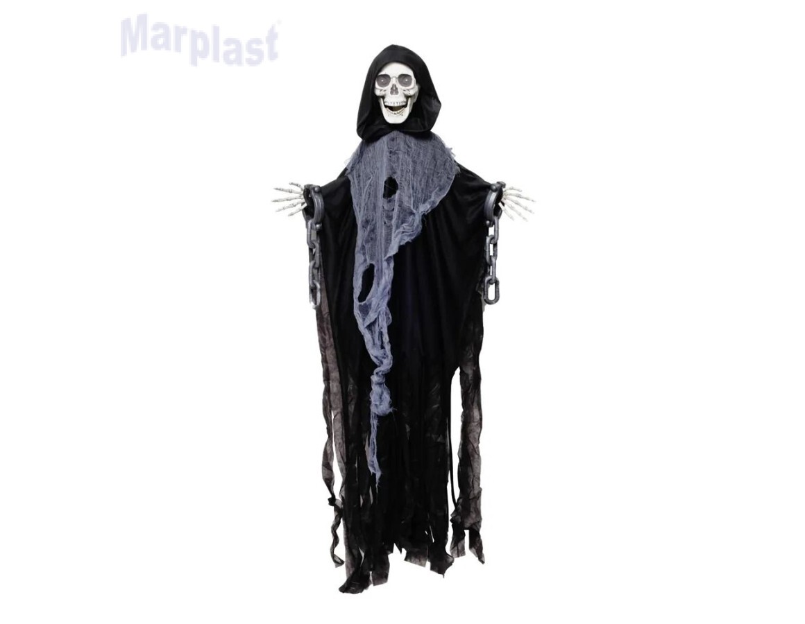Prepare-se para transformar sua decoração de Halloween com o Boneco Morte Aprisionada! Com impressionantes 153cm de altura, essa figura macabra é perfeita para criar uma atmosfera arrepiante em festas, eventos ou até mesmo na entrada da sua casa.