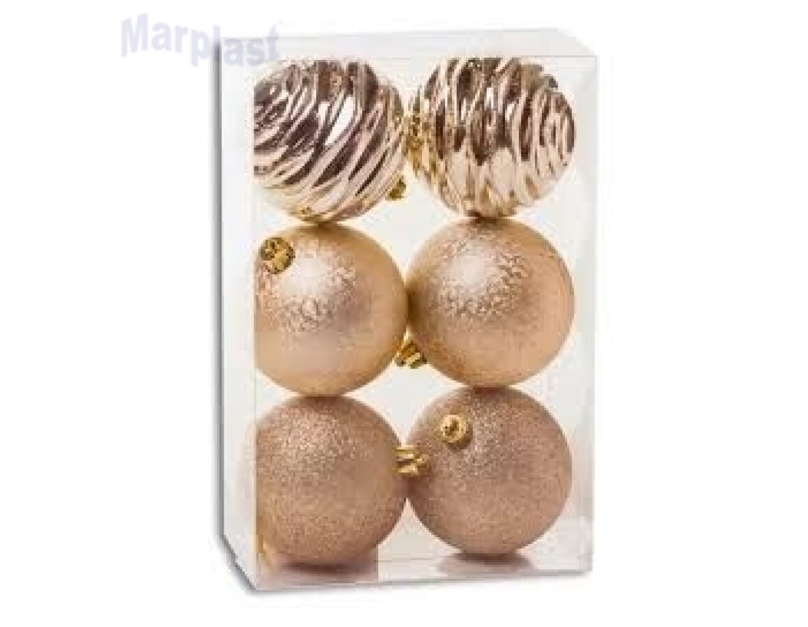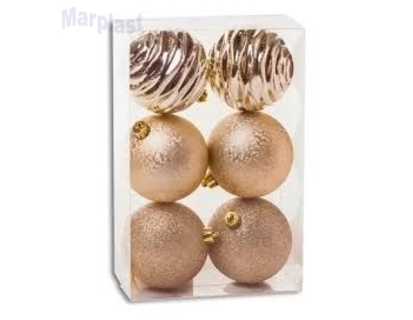 BOLAS C/GLITTER TEXTURIZADA ONDAS OURO 8CM C/6UN