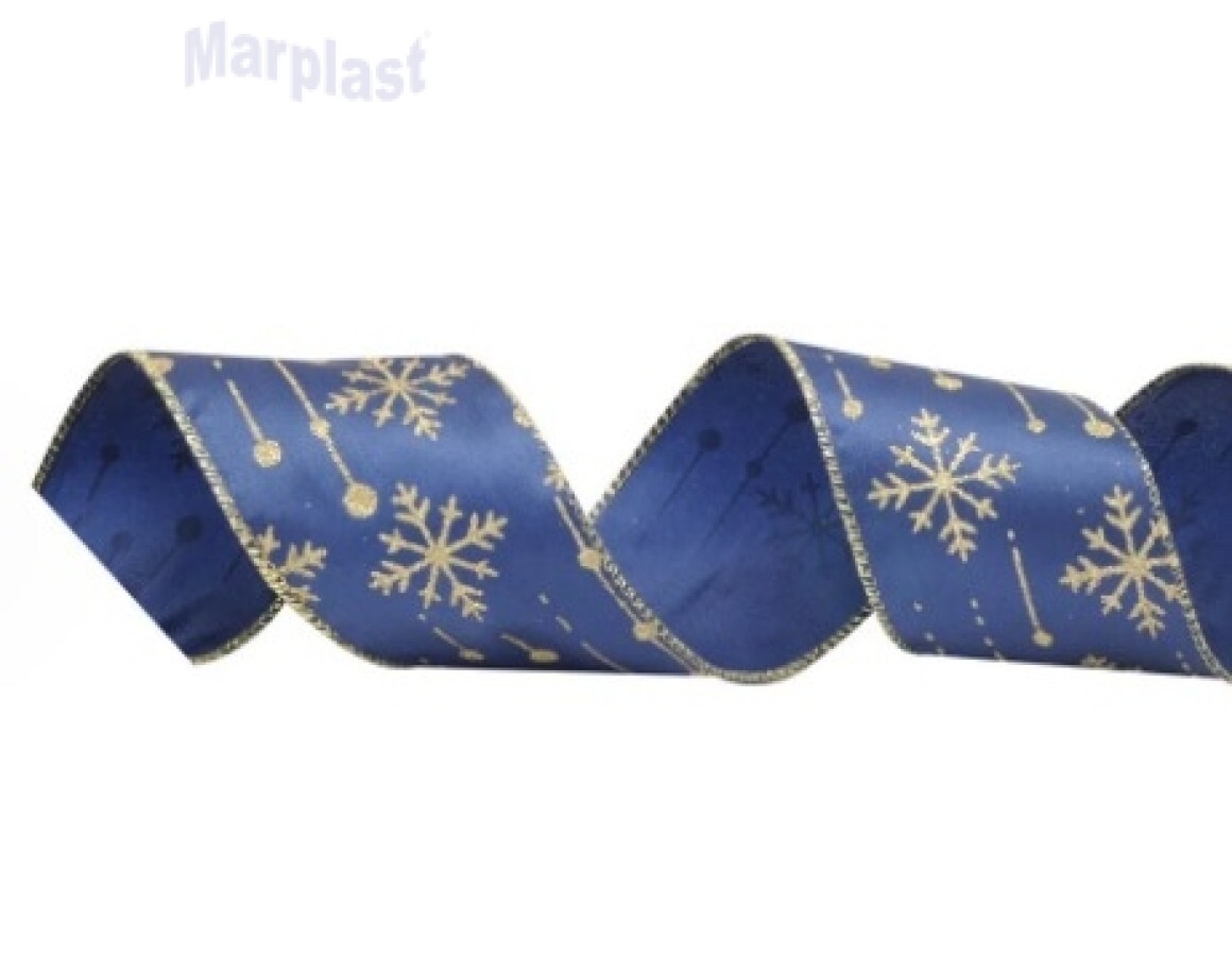 NATAL FITA FLOCO DE NEVE AZUL E OURO 6,3CM