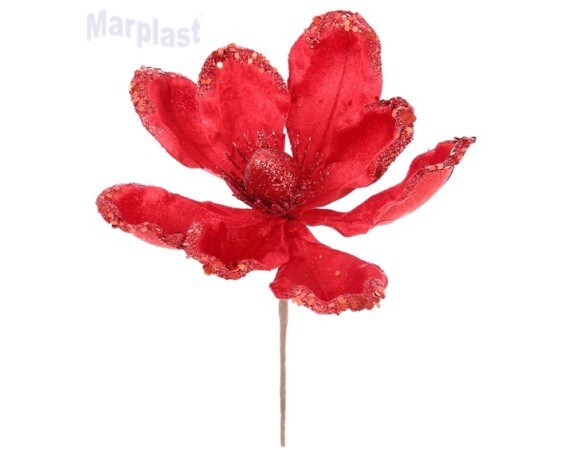 NATAL PICK NATALINOS C/ GLITTER FLOR VERMELHA 19CM