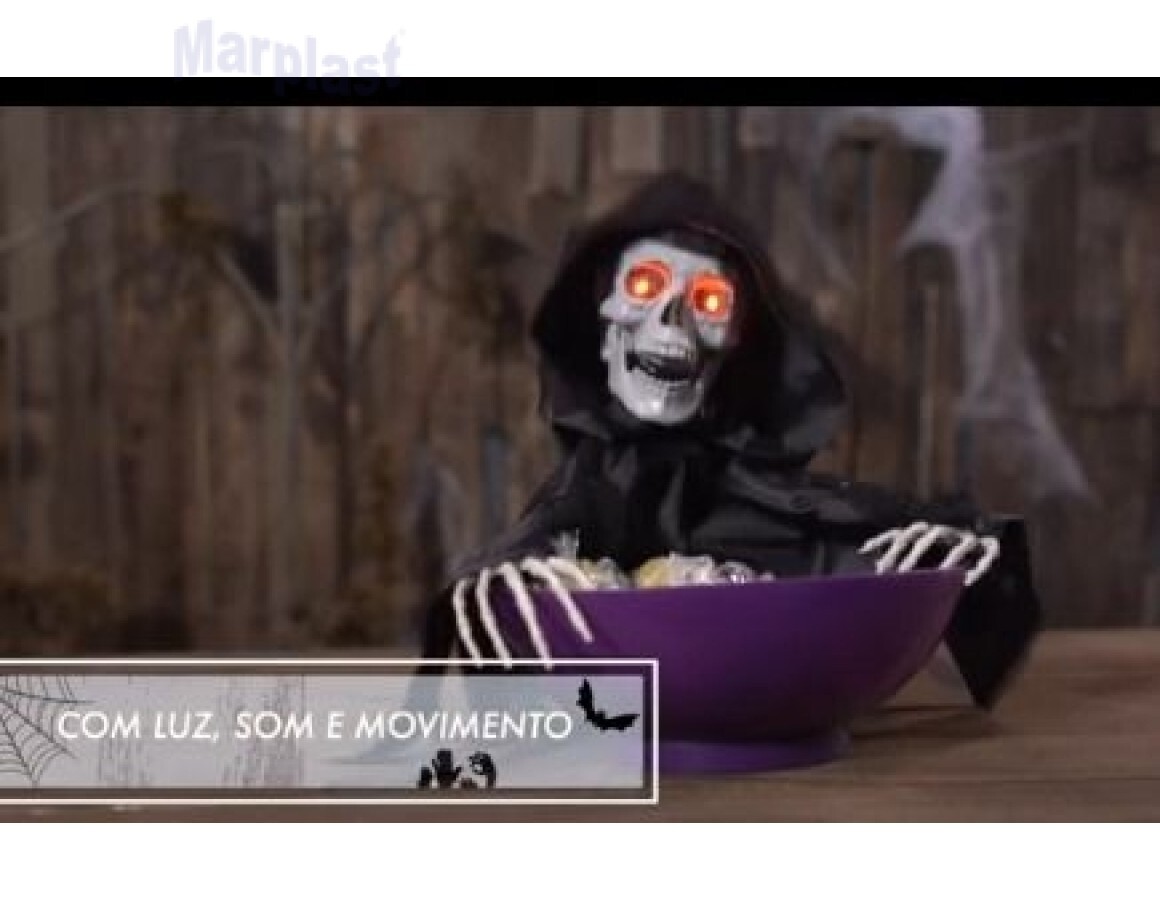 HALLOWEEN PORTA DOCES CAVEIRA SOMBRIA COM SOM E MOVIMENTO