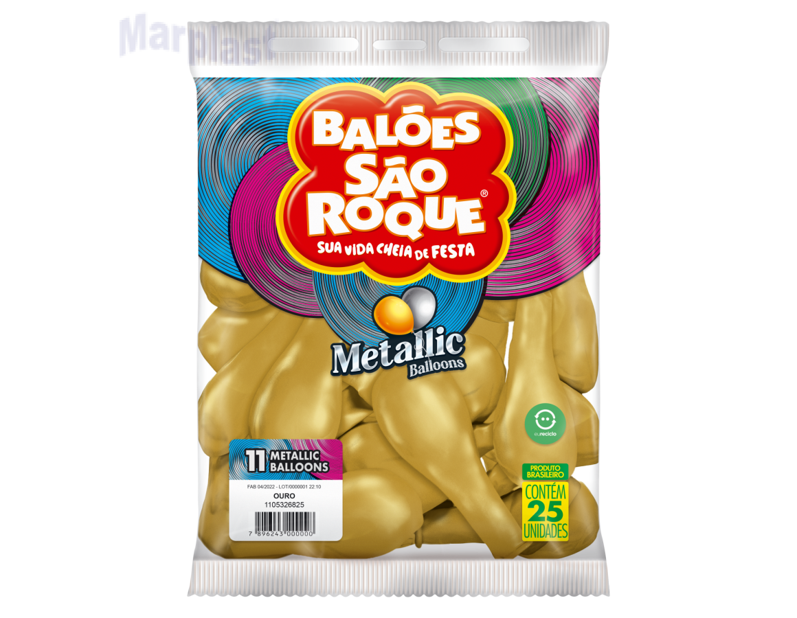 BALÃO SÃO ROQUE - TAMANHO 11 - C/25 UNIDADES - METALIC OURO