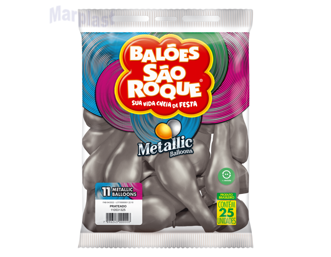 Metallic Prata 11 Polegadas - Com qualidade, resistência e brilho incomparáveis, os Balões São Roque da linha Metallic refletem a ousadia do metal, com um toque de luxo e sofisticação nas festas. As cores são definitivamente incríveis e o produto possui a resistência e durabilidade necessárias para complementar a riqueza e beleza de toda festa, com muito glamour. Considerado o sucesso do momento entre decoradores, amadores ou não, com certeza este item é produto de destaque na nossa linha, com grande sucesso de vendas.