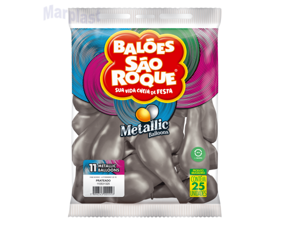 BALÃO SÃO ROQUE - TAMANHO 11 - C/25 UNIDADES - METALIC PRATA