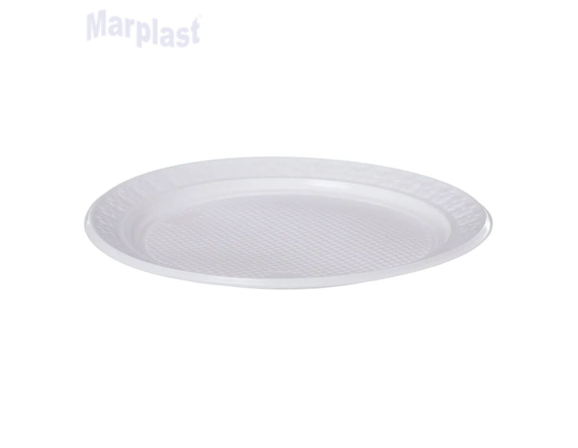 Pratos descartáveis de plástico perfeitos para refeições e sobremesas. Cor: Branco Tamanhos e Quantidades: Prato Descartável Fundo 21 cm