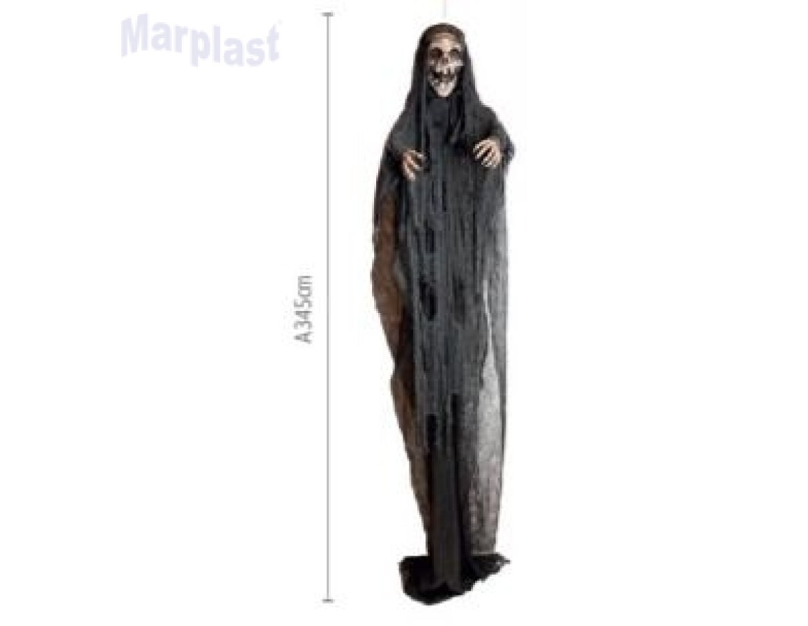 Caveira Dona Morte Caleb Halloween 345cm - 1 UnidadeA Caveira Dona Morte Caleb Halloween é o produto perfeito para adicionar um toque sombrio e misterioso à sua decoração de Halloween. Com impressionantes 345cm de altura, esta peça única certamente será o destaque da sua festa.